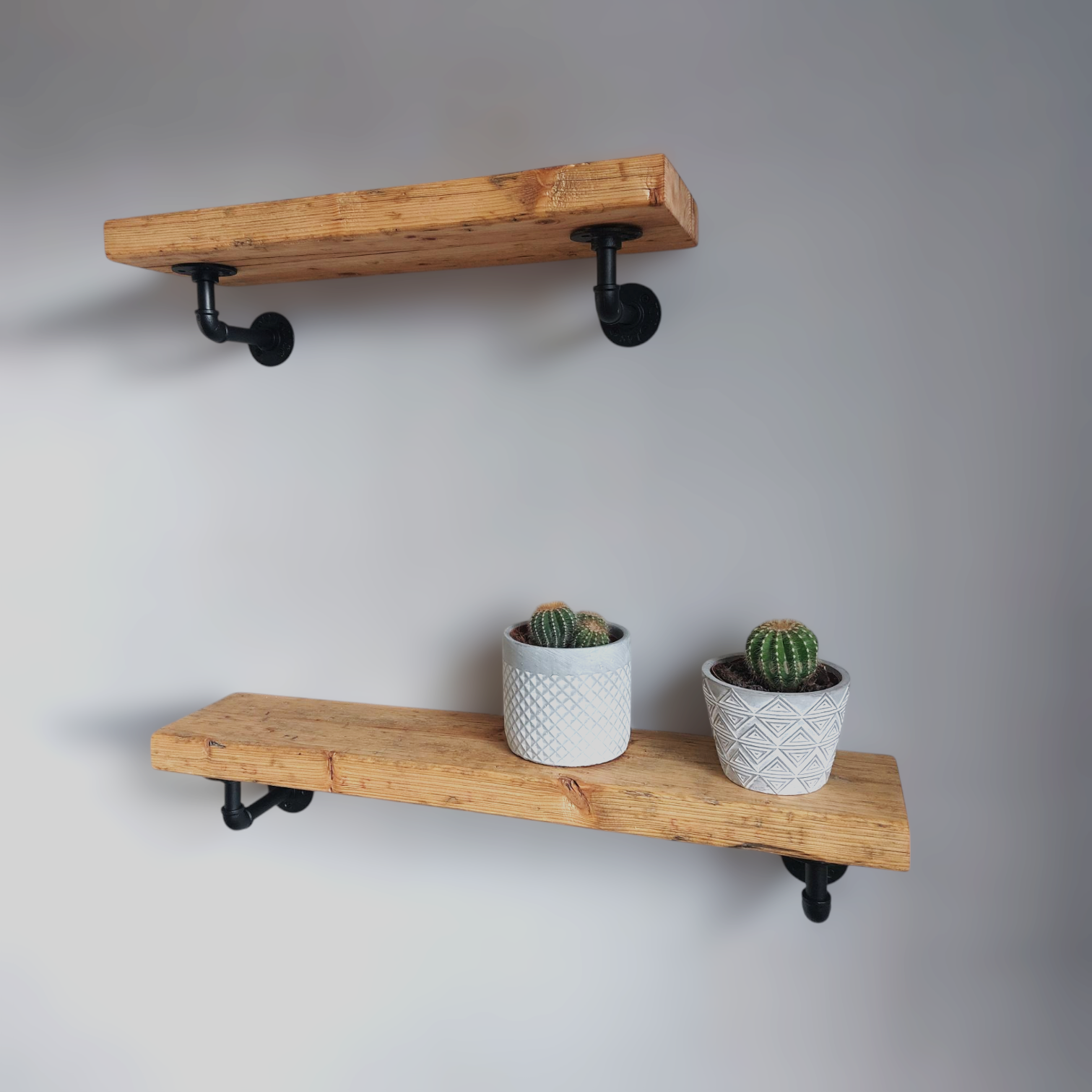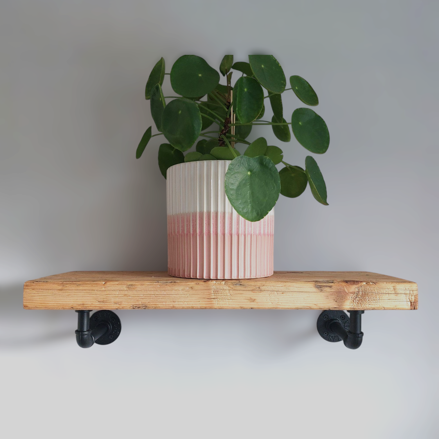 Rustikales Wandregal aus aufbereiteten Gerüstbohlen,